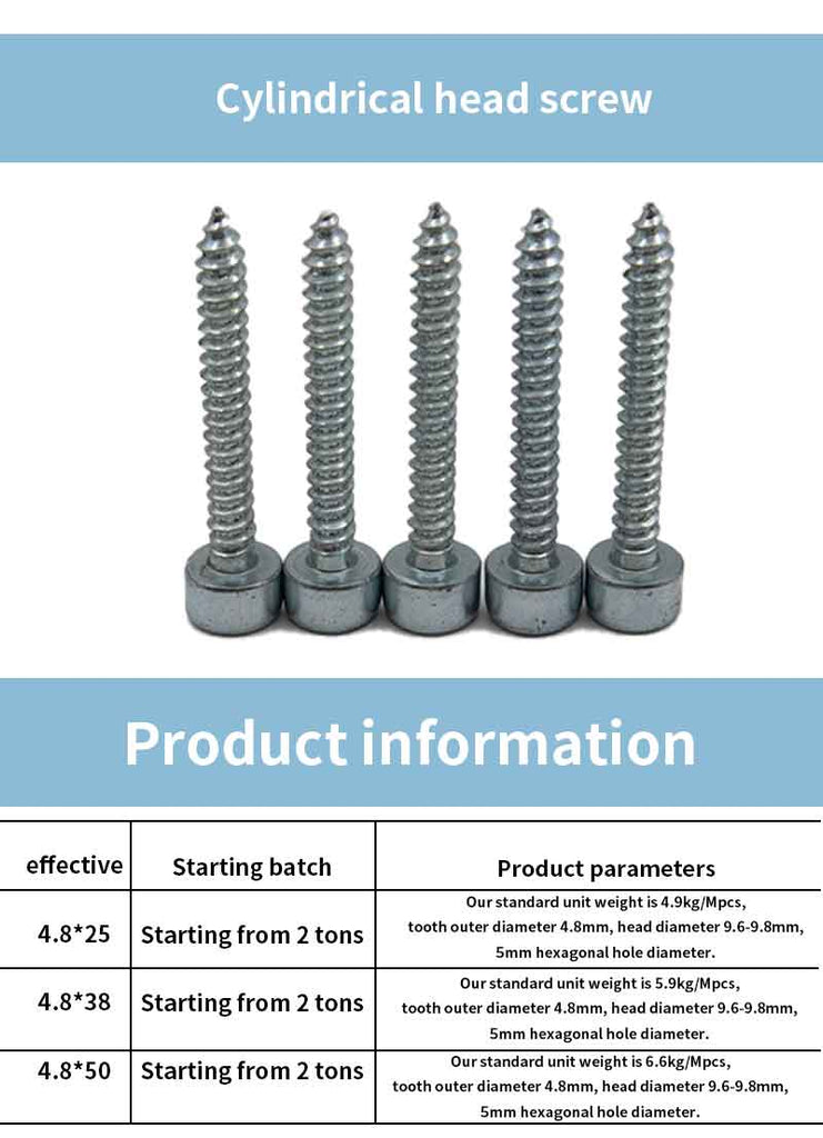 GANBIAO Cylindrical head screws Round head self-tapping screw Pan head pointed tail screw