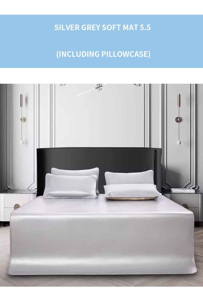 QIYI Silver Grey Soft Mattress 5.5 (with pillowcase) Thickened leather folding soft mat for two people's comfort. Thickened leather mattress, premium top layer cowhide cool mat