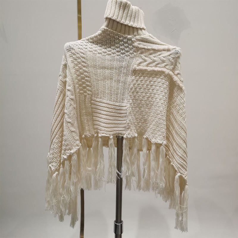 YuXiang New apricot tassel knit sweater high neck spring and autumn retro ladies sweater twill long sleeve Lazy style Thin section